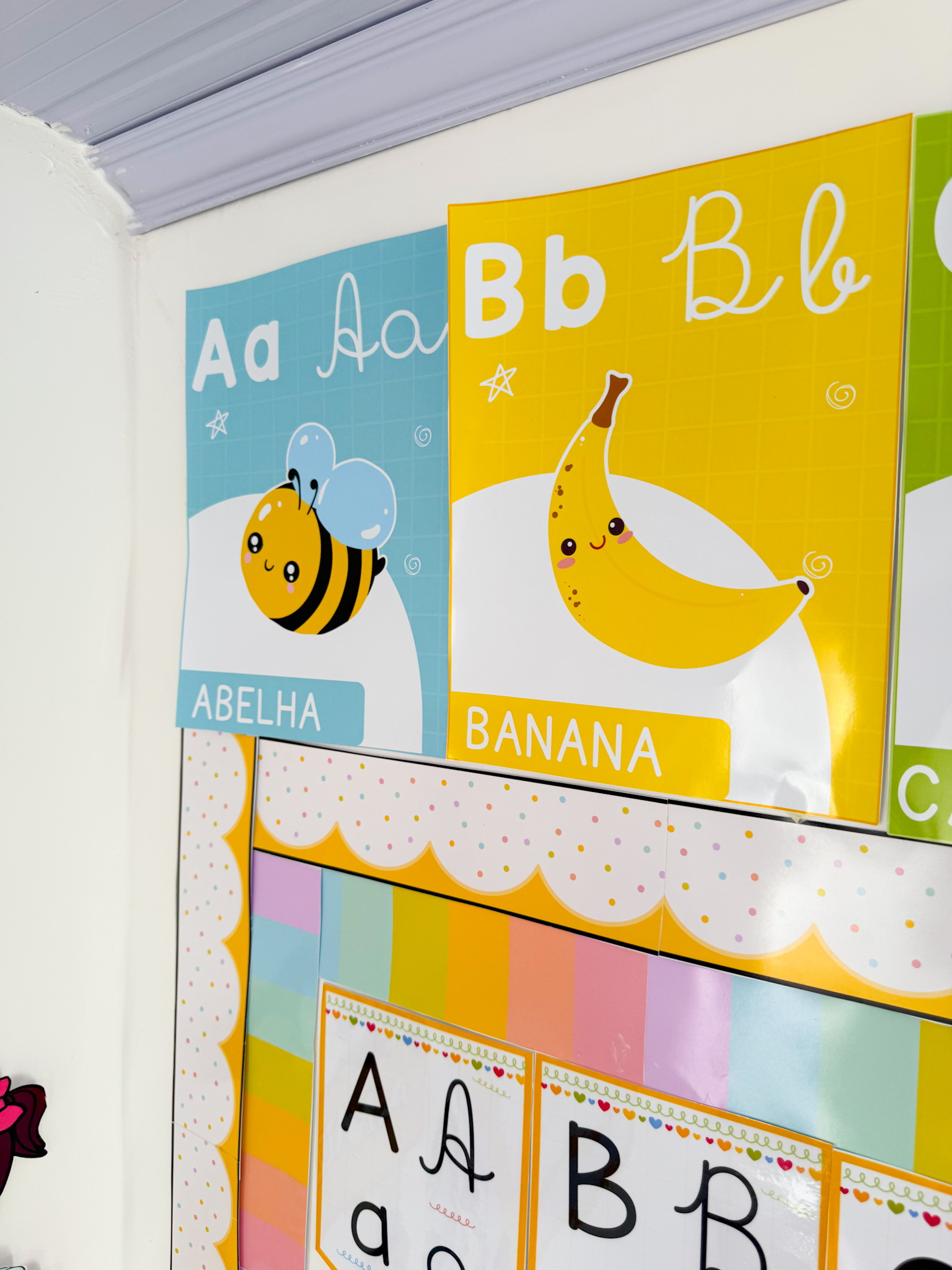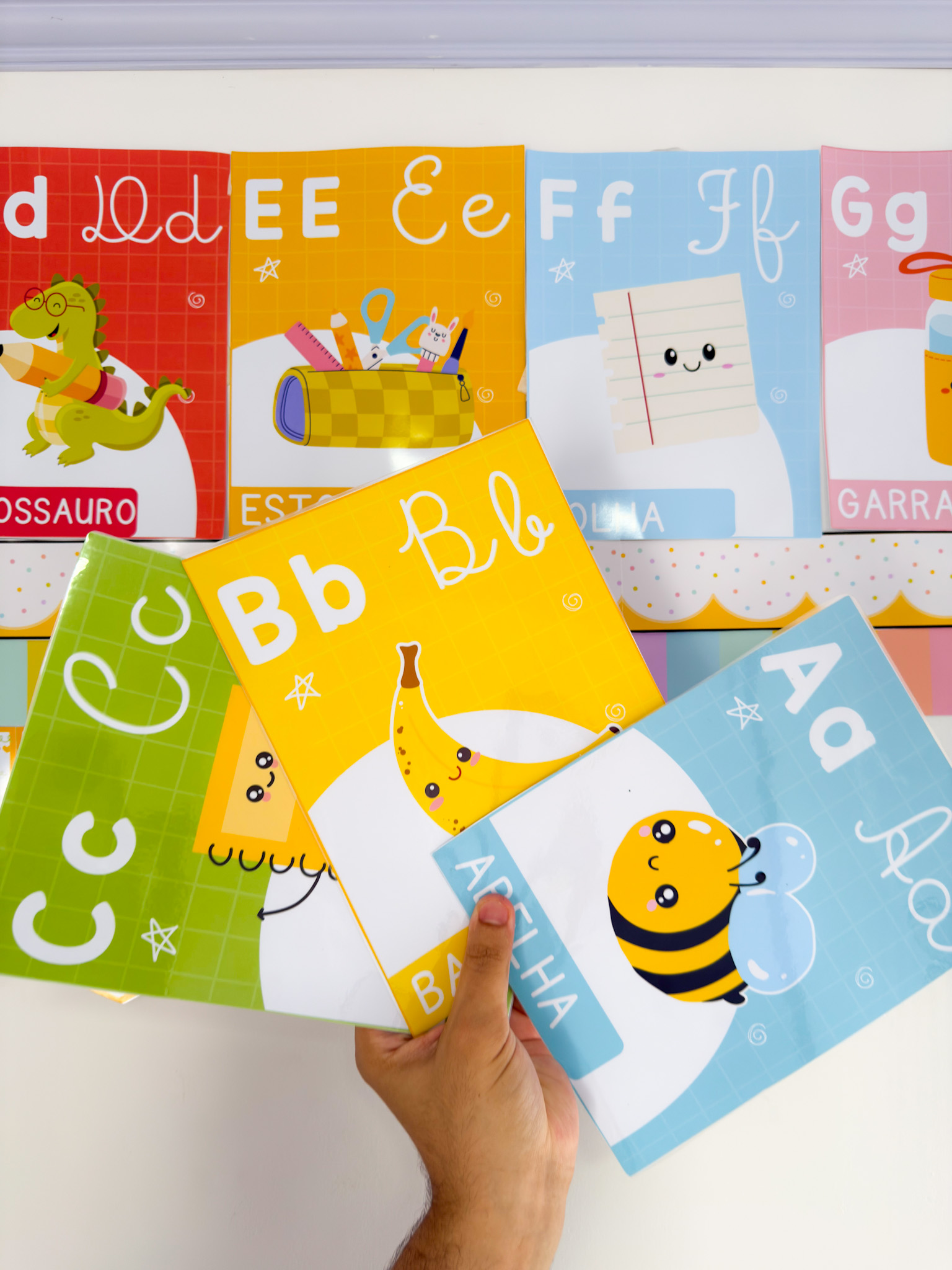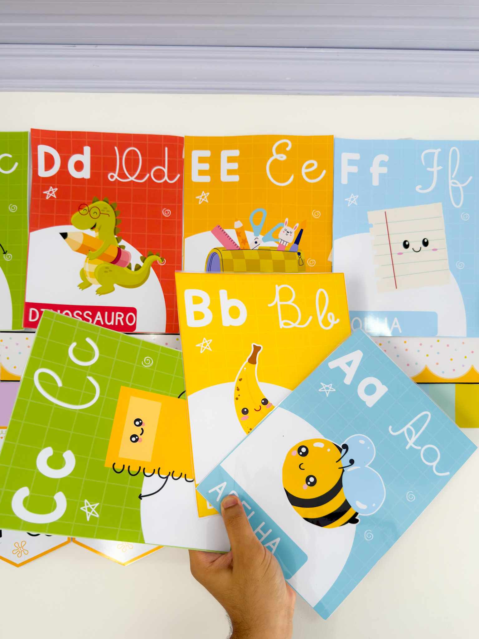 Indicado para salas de aula, murais e atividades de alfabetização, auxiliando no reconhecimento das letras.