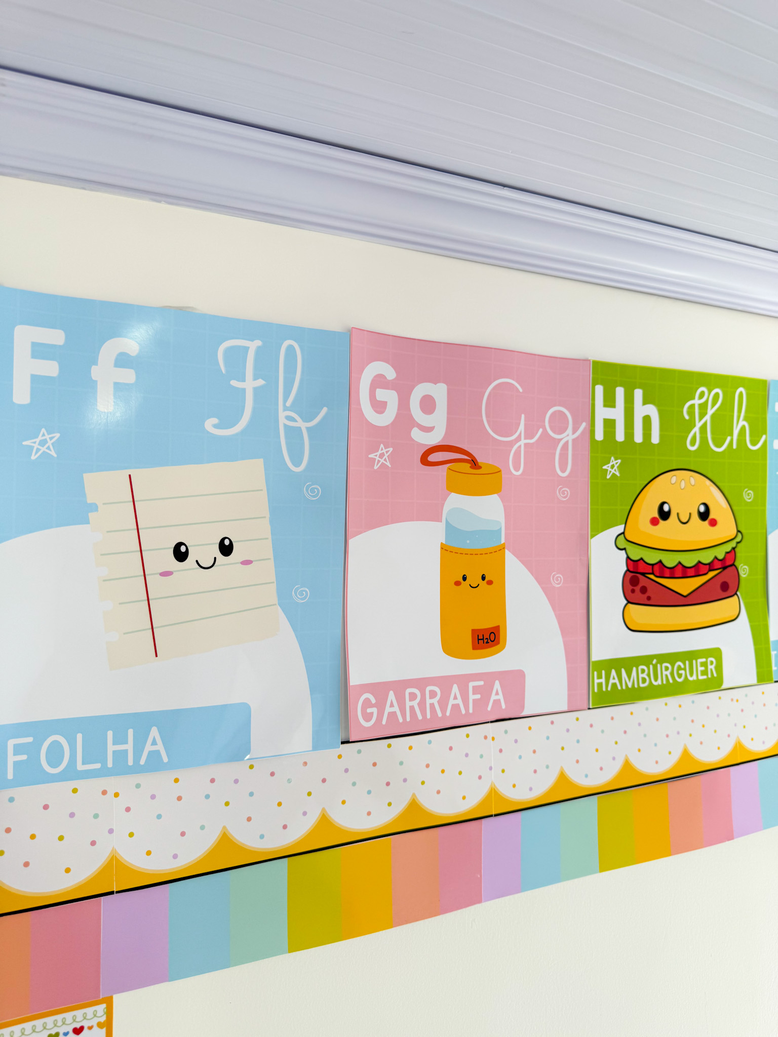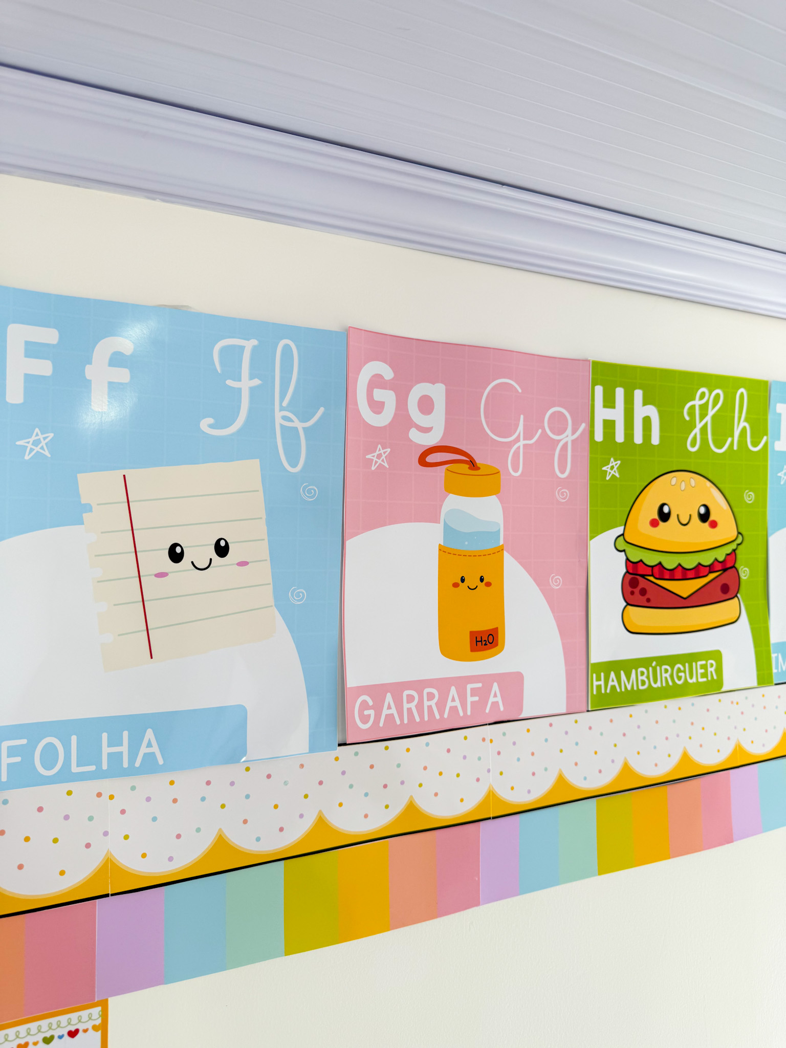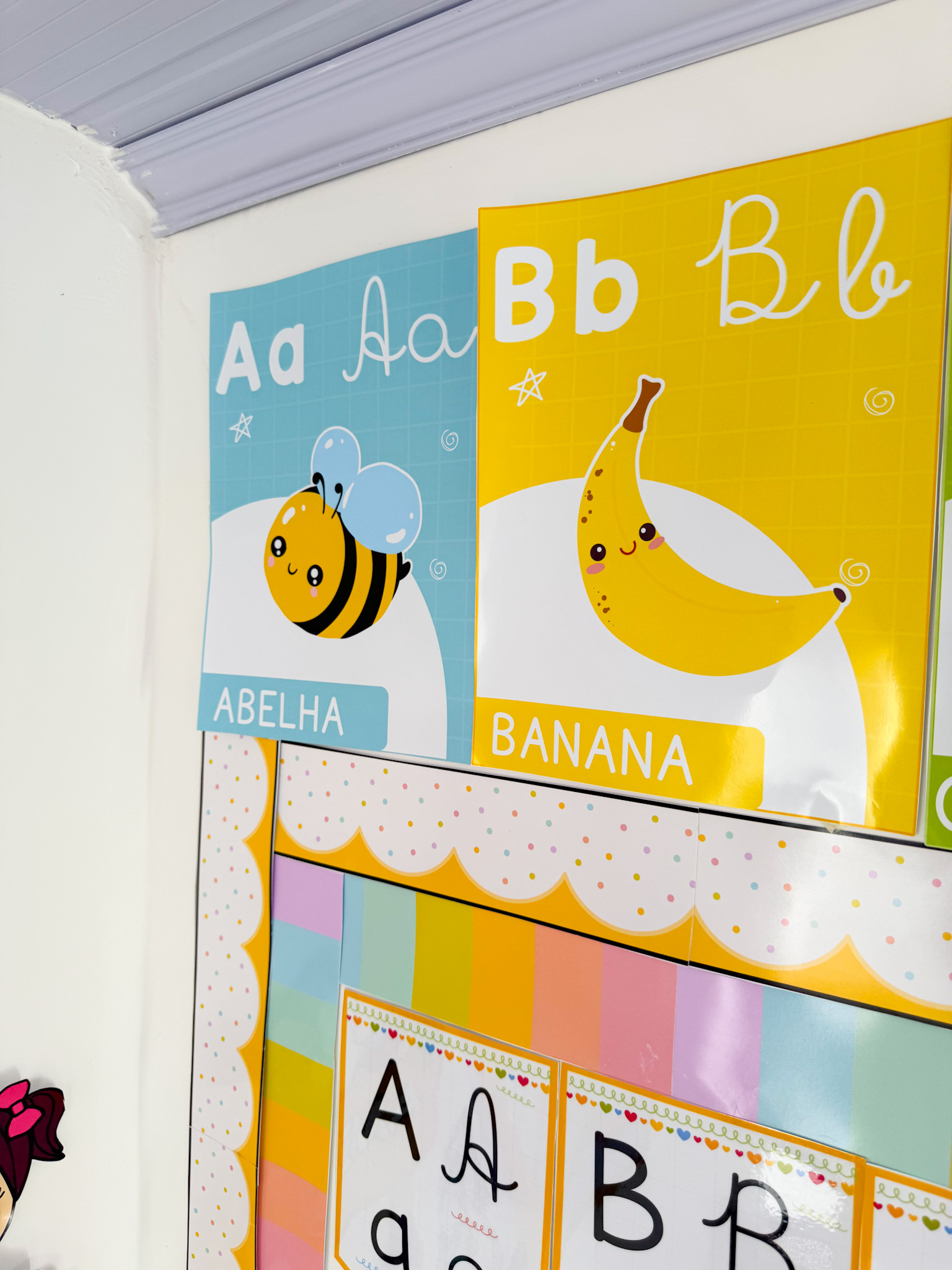 Indicado para salas de aula, murais e atividades de alfabetização, auxiliando no reconhecimento das letras.