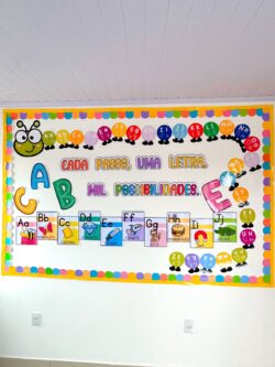 📚 O arquivo contém uma centopeia super colorida com as 4 letras, ideal para decorar a sala de aula.