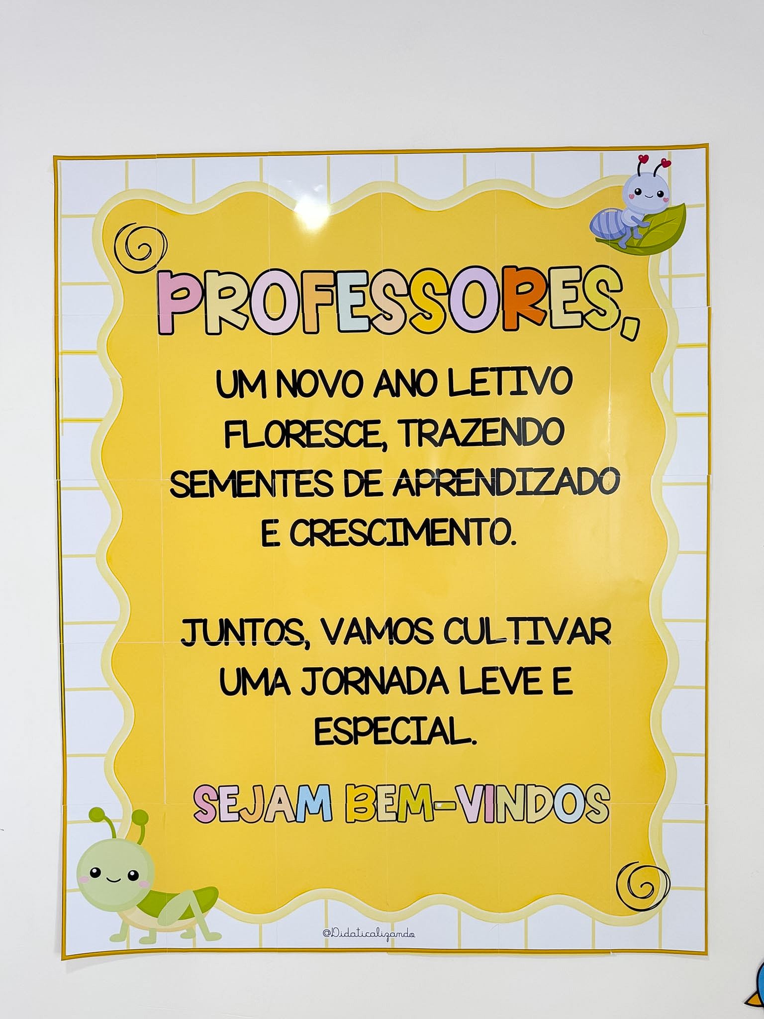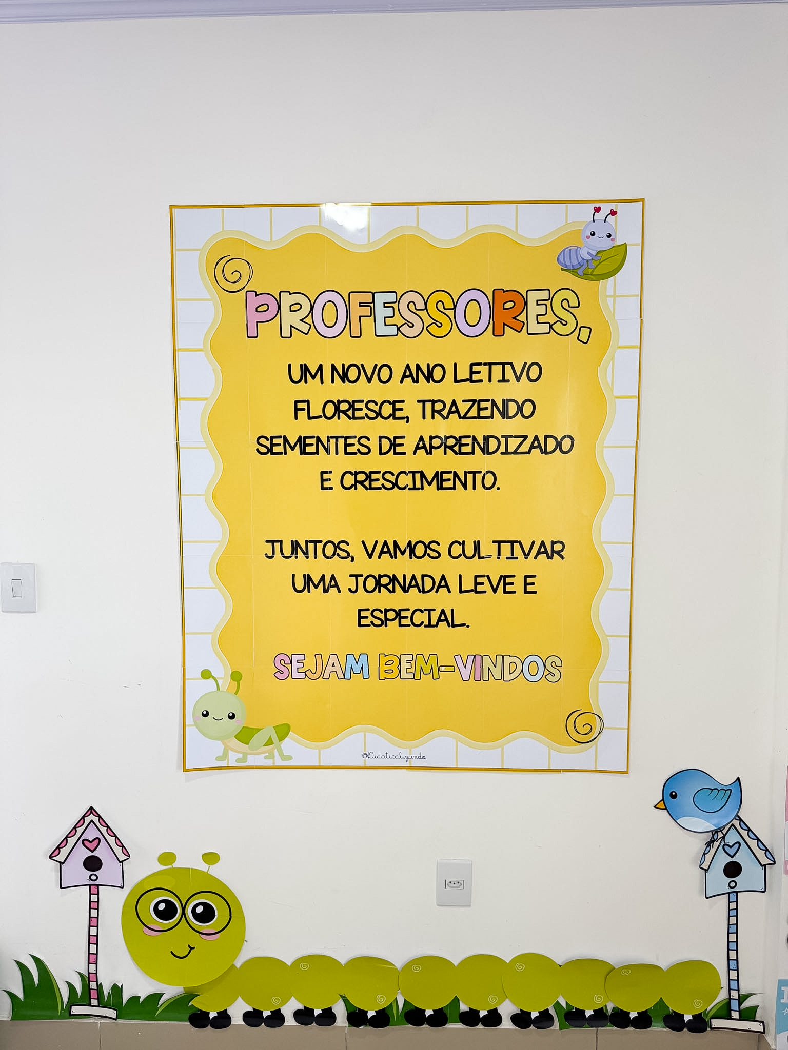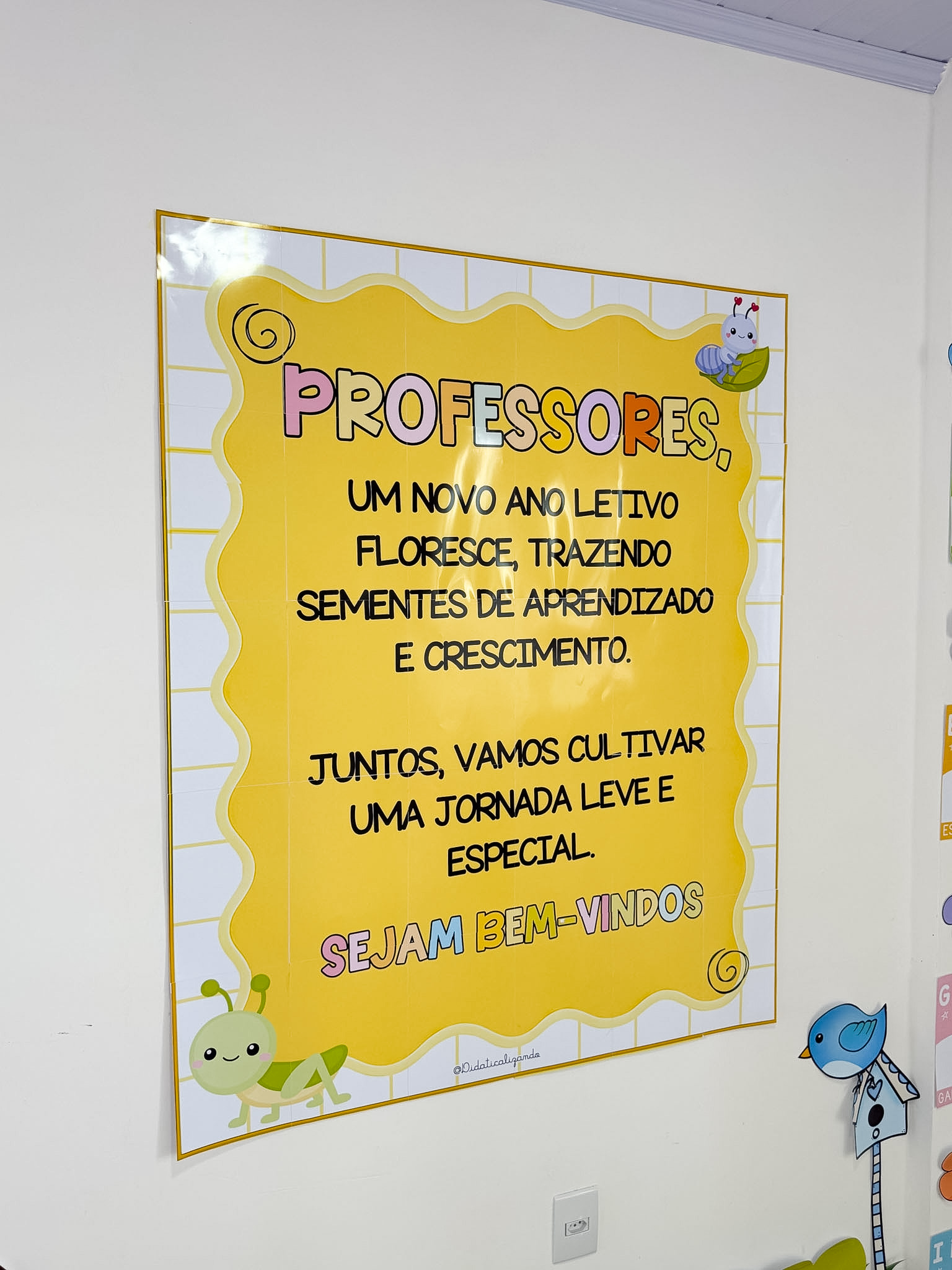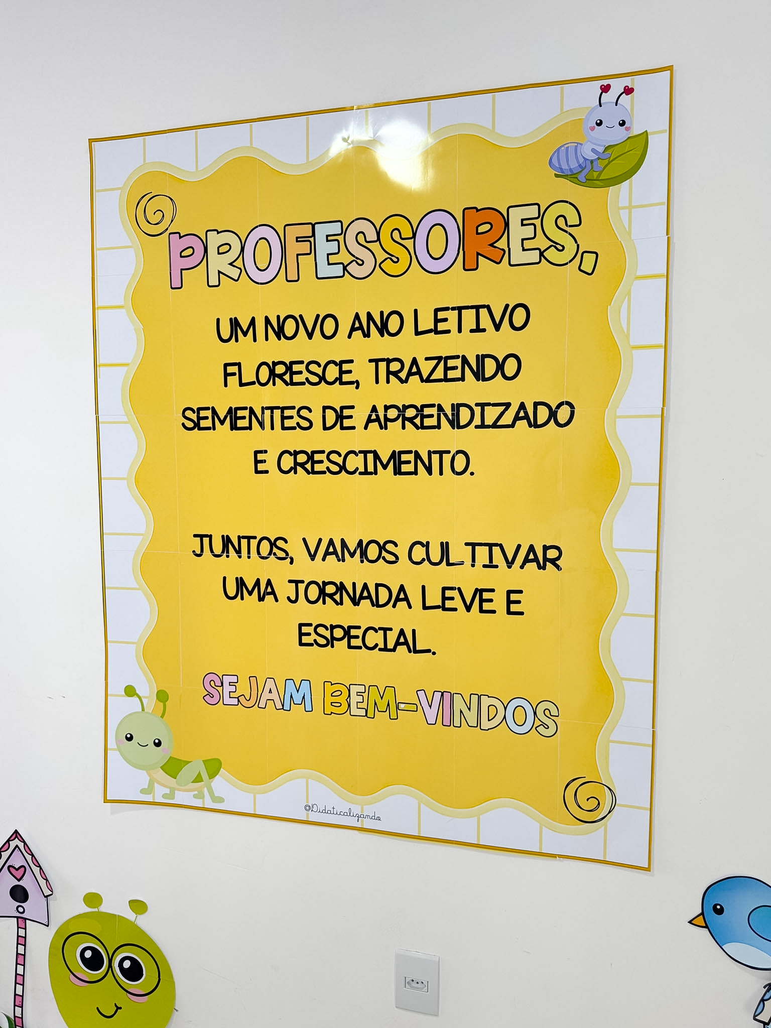 Indicado para escolas, salas de aula, murais, corredores e ambientes pedagógicos, ideal para o retorno às atividades, início de período letivo ou momentos de acolhimento.
