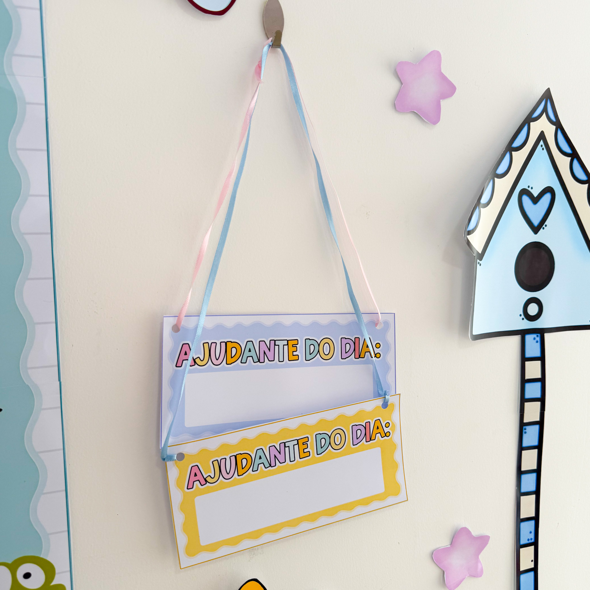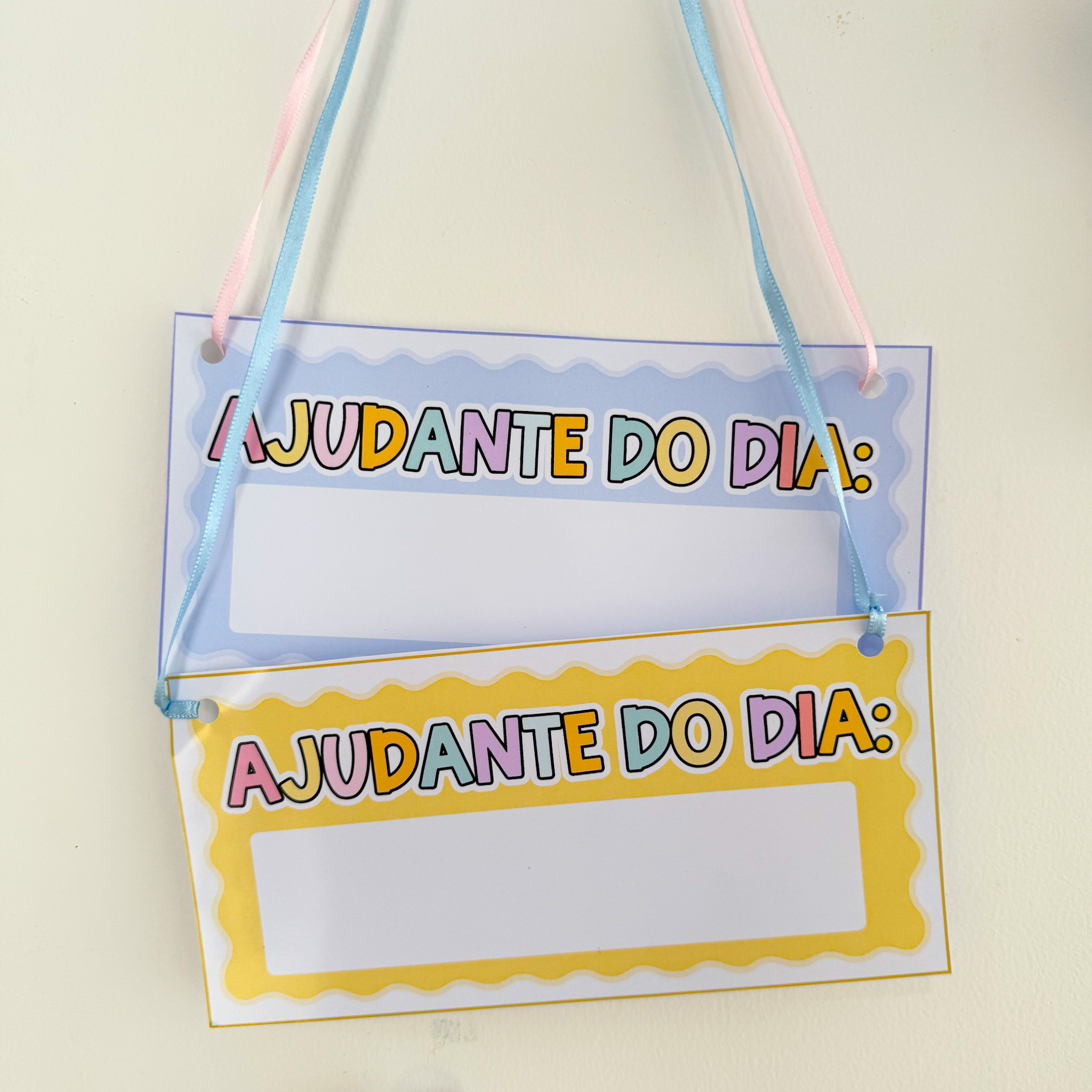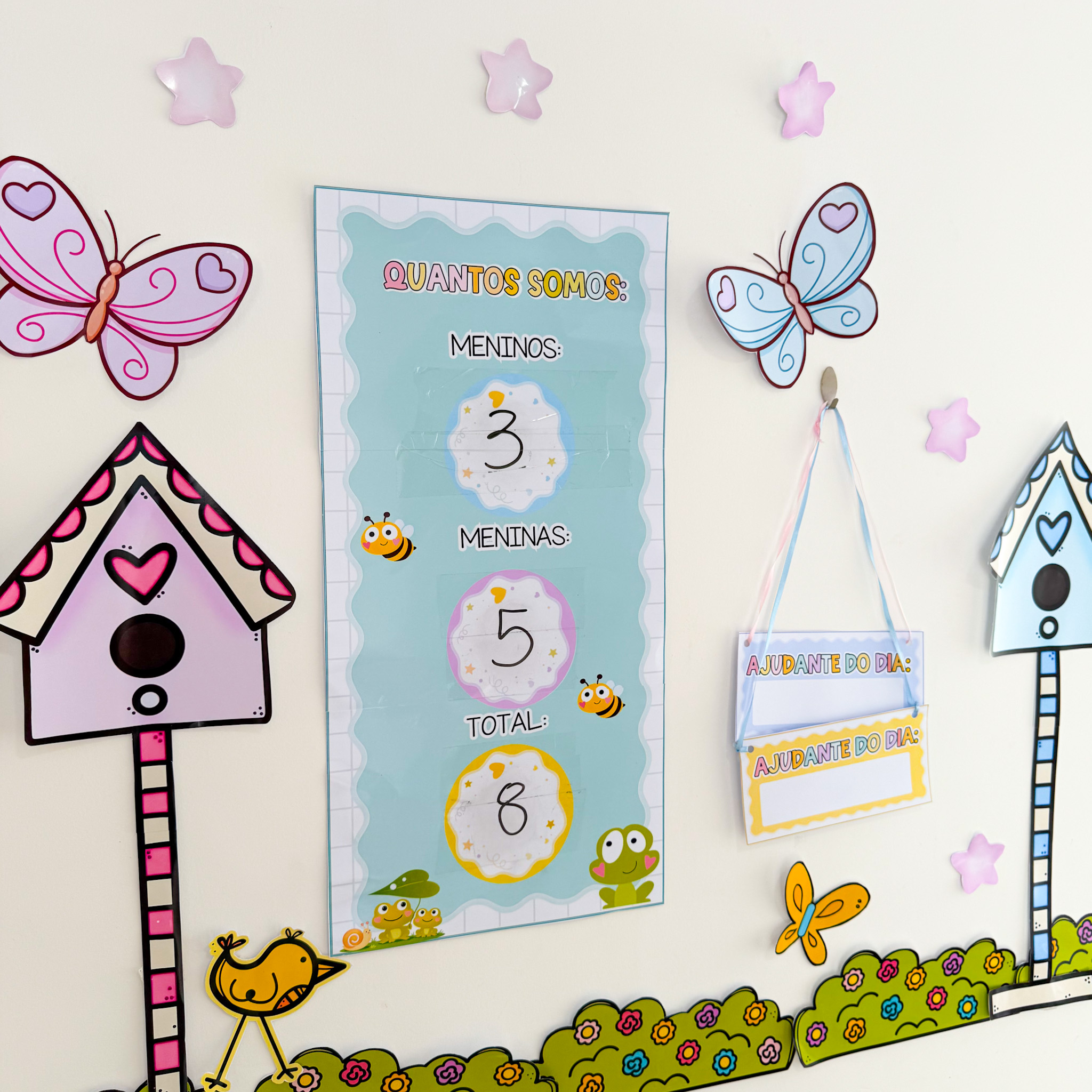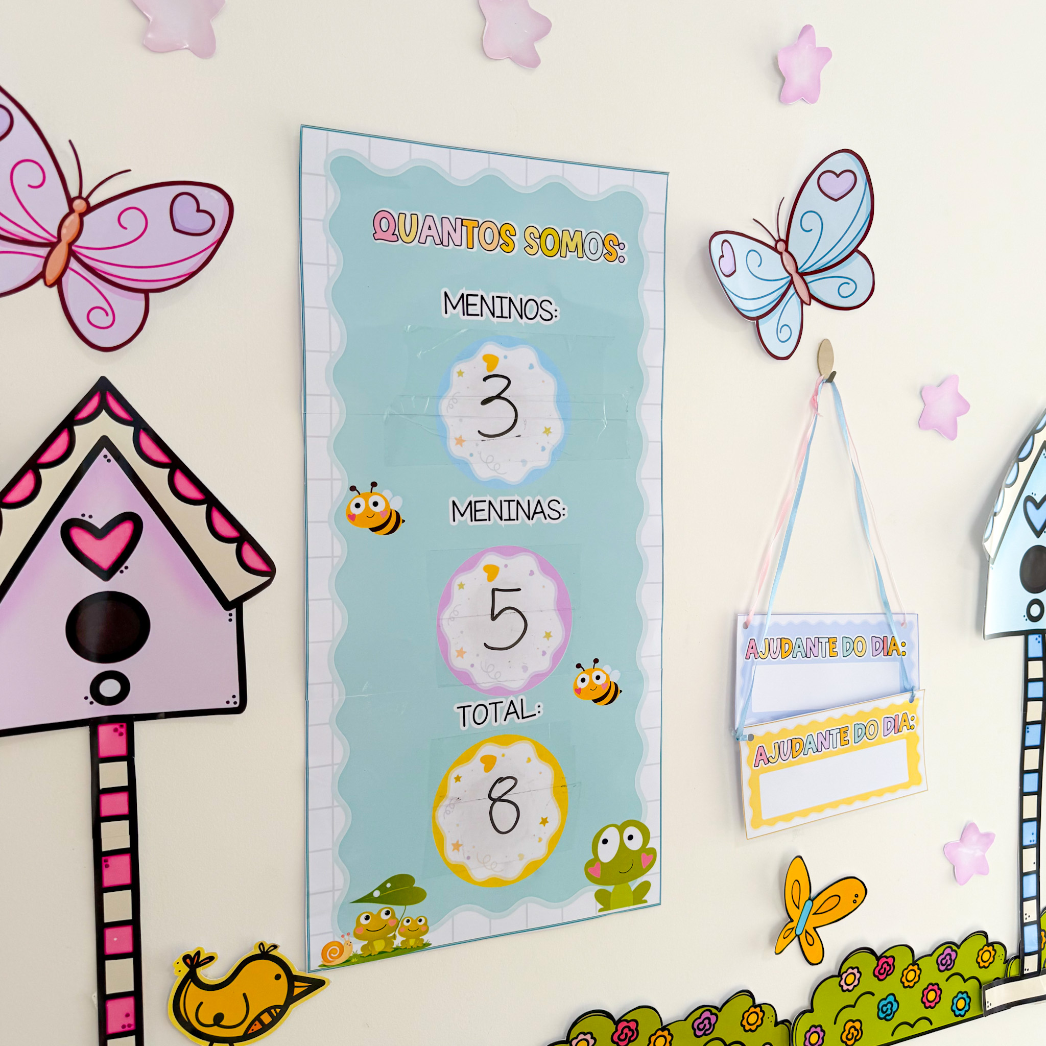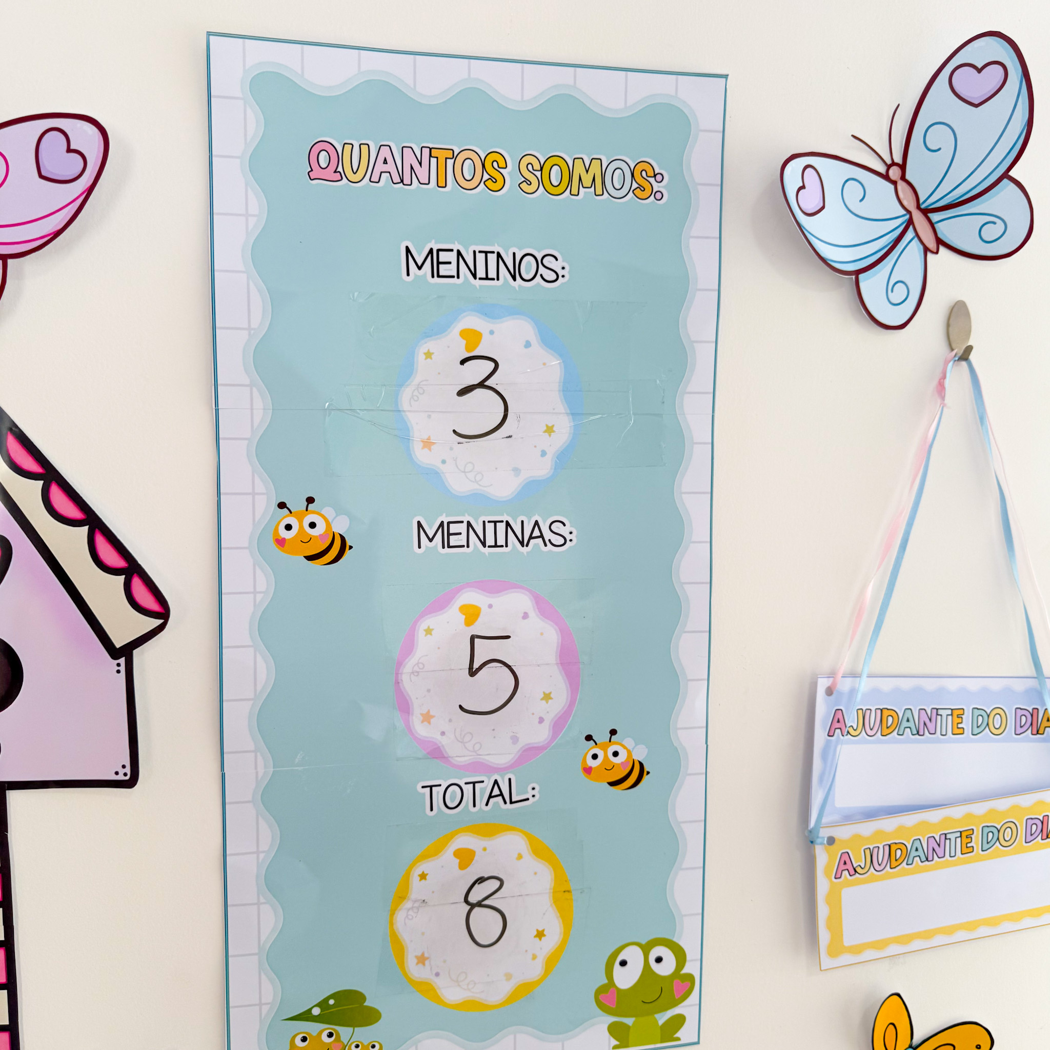 Material pedagógico composto por Quantos Somos e Ajudante do Dia, desenvolvido para apoiar a rotina escolar e incentivar a participação dos alunos no dia a dia da sala de aula.